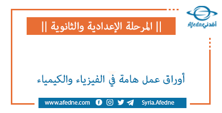 شروحات وحلول ونماذج امتحانية الفيزياء والكيمياء للصف التاسع: