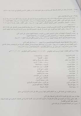المطلوب دراسته للإمتحان التحريري وتوزيع الدرجات كالتالي: